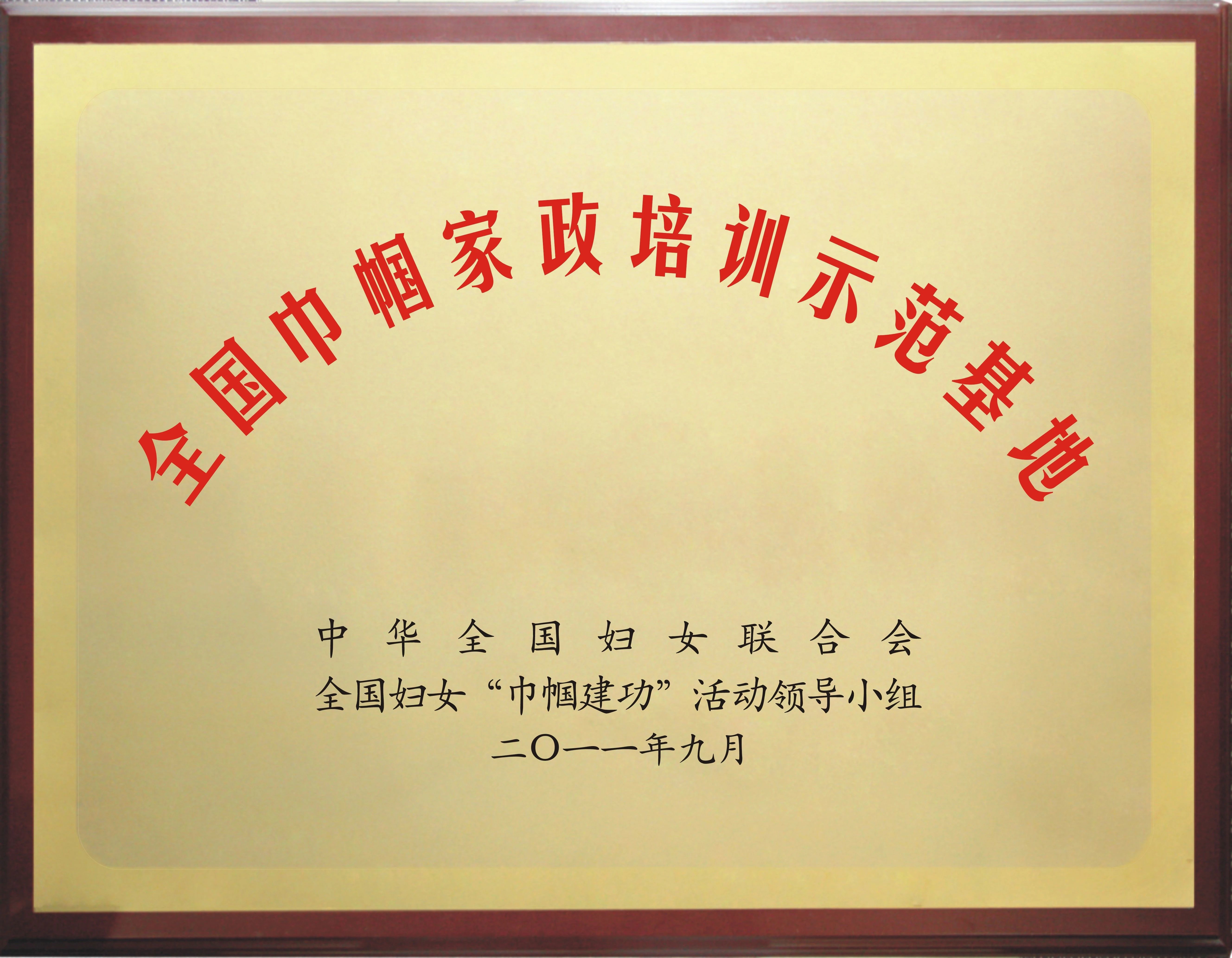 2011年9月中華全國(guó)婦女聯(lián)合會(huì)授予三替集團(tuán)“全國(guó)巾幗家政培訓(xùn)示范基地”榮譽(yù)稱號(hào)