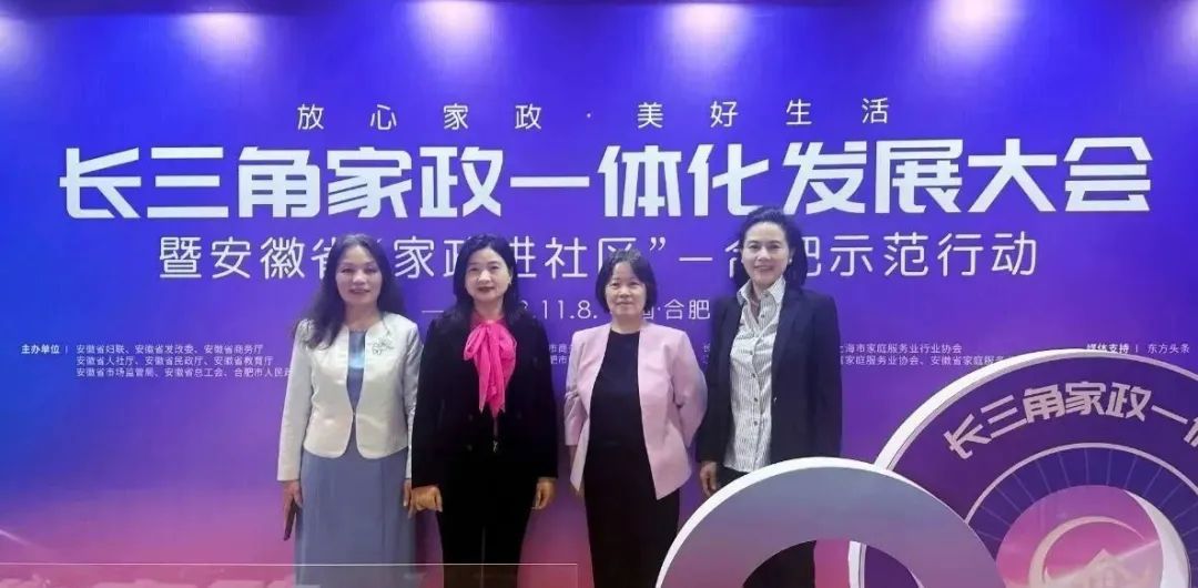 11月8日,長三角家政一體化發展大會在安徽順利召開。今年由安徽省擔任長三角家政服務一體化發展聯盟輪值主席單位。浙江省家庭服務業協會會長、三替集團董事長陶曉鶯出席此次會議并作主題演講。
