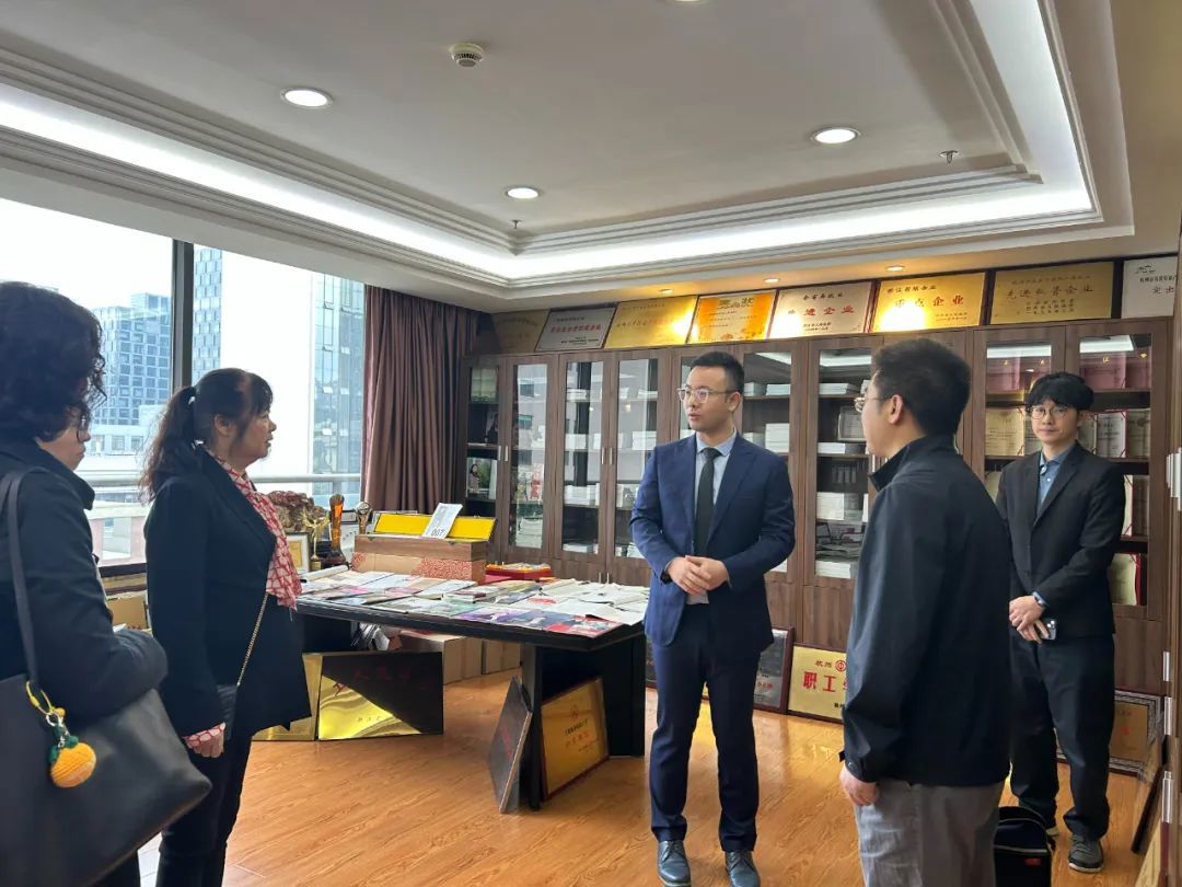 黃總為唐局長一行介紹三替三十年的企業(yè)文化和所獲榮譽(yù)