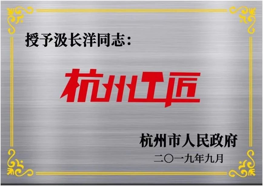 三替集團汲長洋被杭州市人民政府授予杭州工匠榮譽稱號
