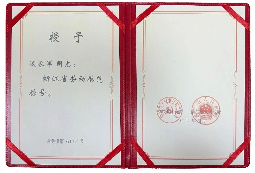 三替集團汲長洋榮獲“浙江省勞動模范”榮譽稱號