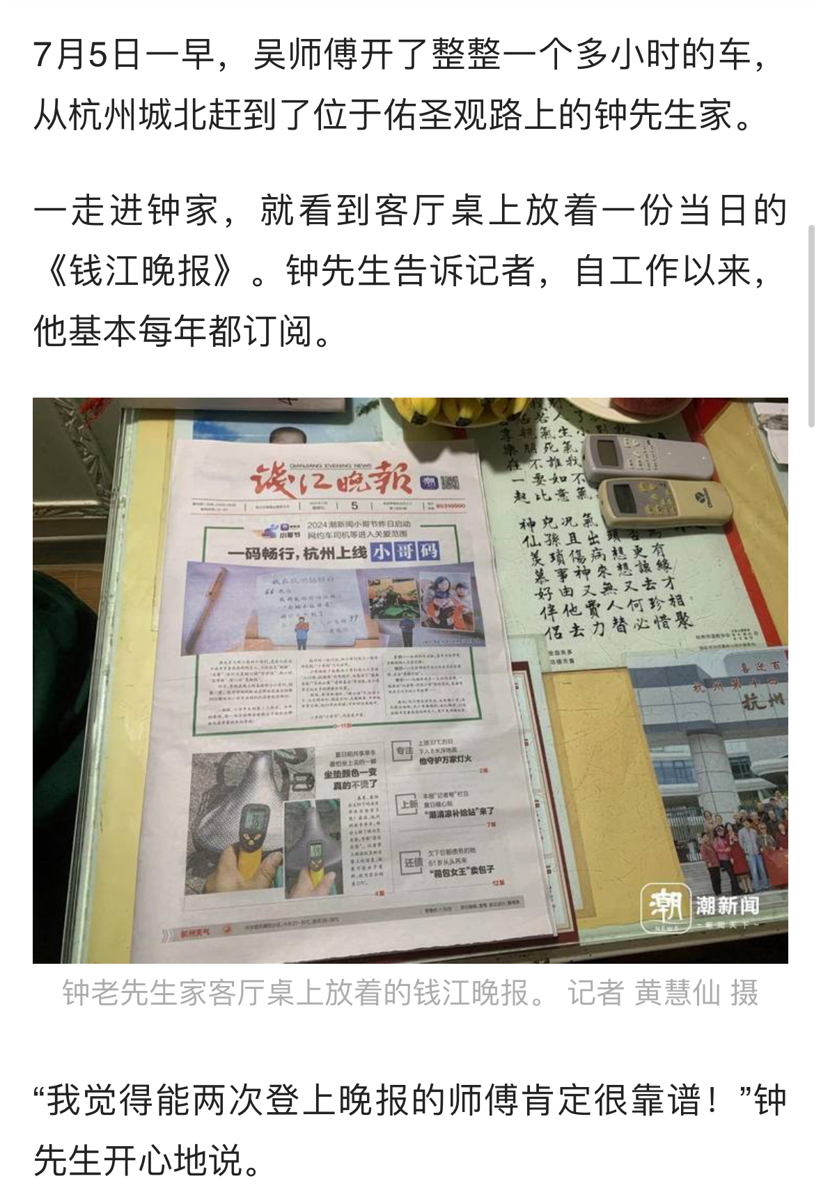 一走進鐘家,就看到客廳桌上放著一份當日的《錢江晚報》。鐘先生告訴記者,自工作以來,他基本每年都訂閱。