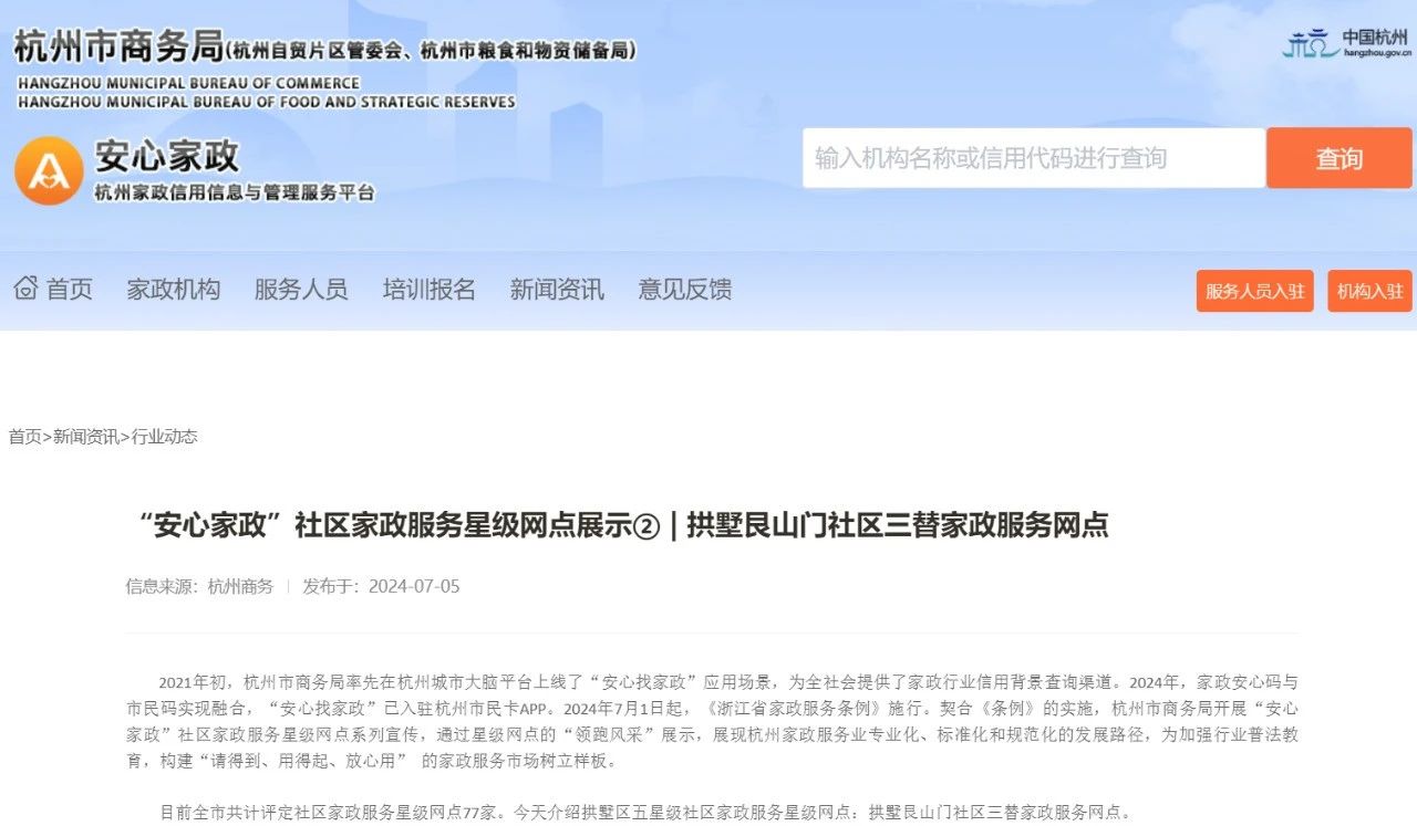 杭州市商務局報道三替集團艮山門社區家政服務網點