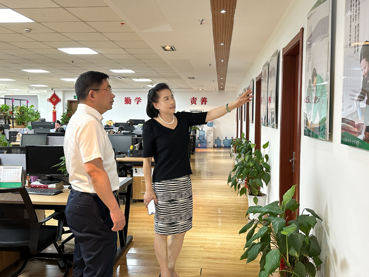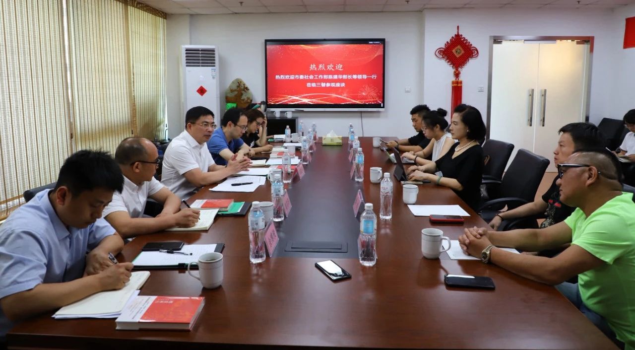 7月10日,杭州市市委社會工作部部長、兩新工委書記陳建華,市委社會工作部辦公室(政策法規處)主任楊汶浩,杭州市市委社會工作部行業協會商會發展處處長姜劍濤,杭州市商務局商貿運行處副處長徐明,杭州市市委社會工作部辦公室(政策法規處)干部余博俊等領導一行蒞臨三替集團參觀調研,就家政行業協會的工作和發展進行了座談交流,杭州市家政服務業協會會長、三替集團董事長陶曉鶯等陪同調研并展開交流,杭州市家政服務協會副會長單位——杭州搬家有限公司、杭州天使控股(集團)有限公司等企業一同參與座談會。