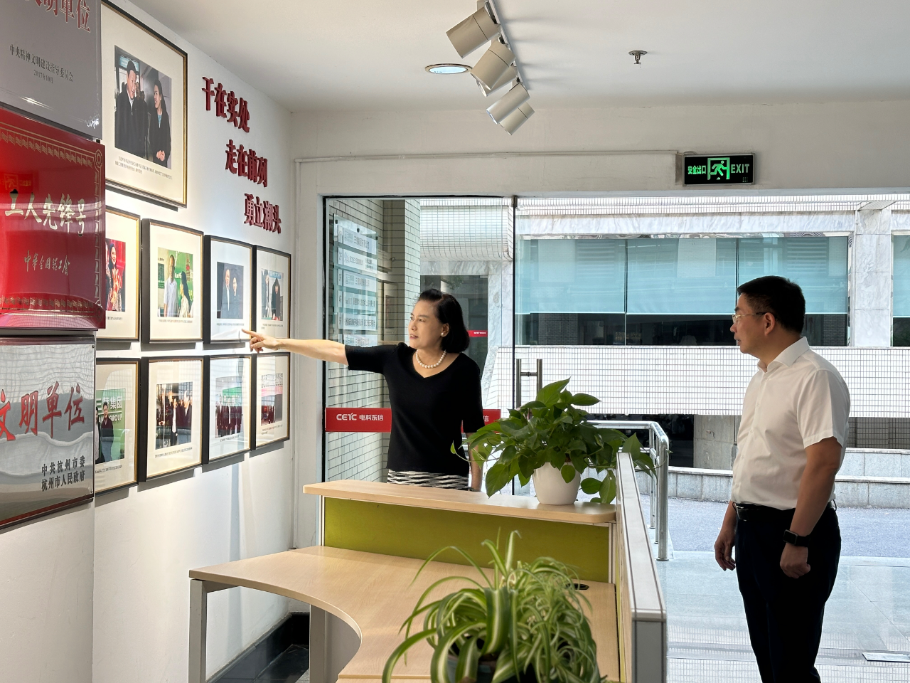 陶董為杭州市市委社會工作部部長陳建華等領導一行介紹三替發展歷史