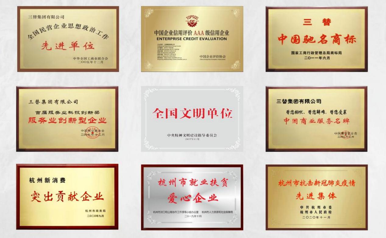 三替集團(tuán)榮獲全國文明單位、中國馳名商標(biāo)等眾多榮譽(yù)稱號(hào)